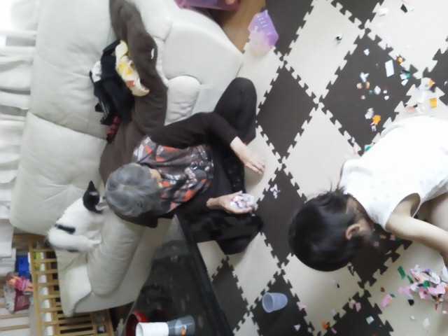 2歳の孫(ひ孫)、ハサミが上手に使えるようになり、