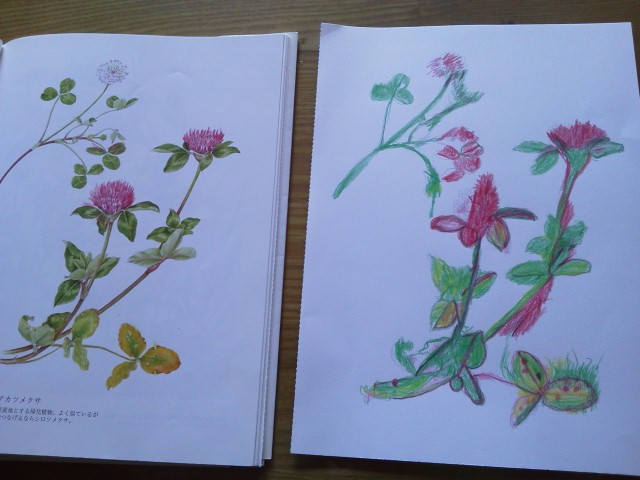 お手本の絵に色を重ねてました。
