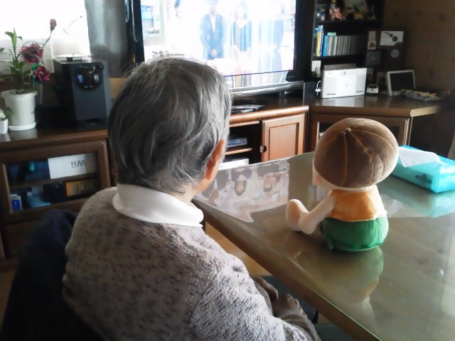 かぼちゃん(人形)とテレビを見てます。