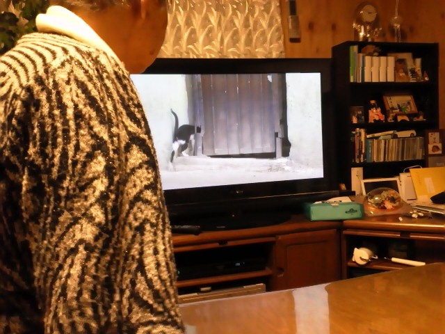 テレビで野良猫を追いかけてます。