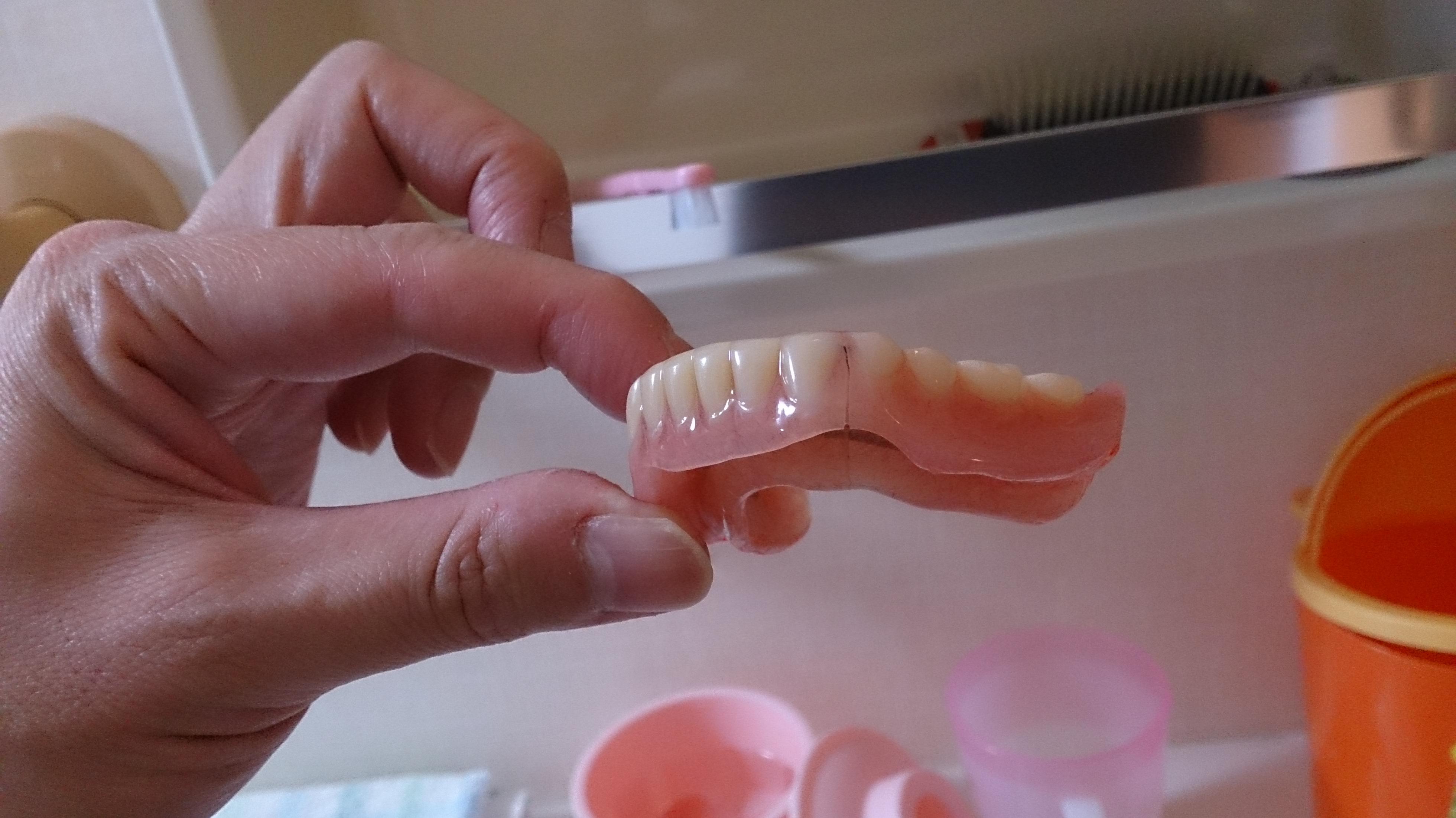 とりあえず、上の入れ歯だけを入れ